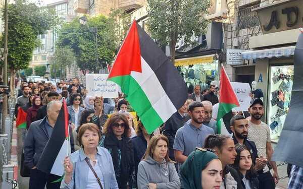 نُظمت في مدينة رام الله، اليوم الأحد، وقفة للتنديد بالعدوان الإسرائيلي على قطاع غزة، ورفضا للجرائم التي تتعرض لها الطواقم الطبية والمستشفيات والصحفيين والنساء والأطفال.