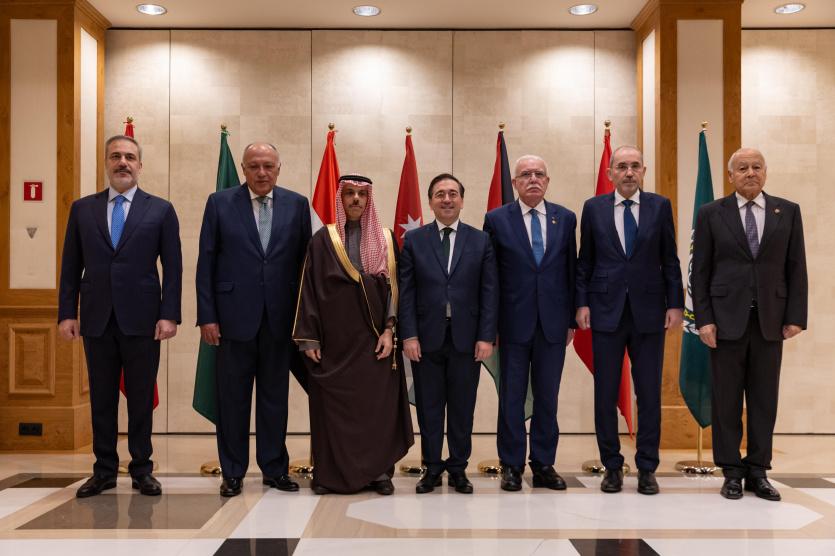 التقى أعضاء اللجنة الوزارية المكلفة من القمة العربية الإسلامية المشتركة غير العادية، برئاسة وزير خارجية السعودية الأمير فيصل بن فرحان بن عبد الله، اليوم الاثنين، في مدينة برشلونة الإسبانية، بوزير خارجية مملكة إسبانيا خوسيه مانويل ألباريس.
