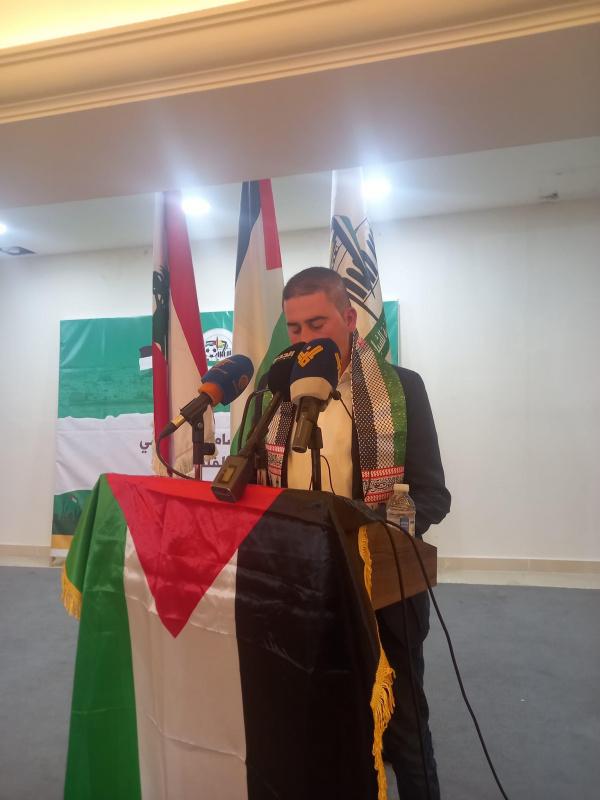 بدأ اللقاء بآيات من الذكر الحكيم، تلاها الشاب محمد شهاب، ثم النشيدين الوطنيين اللبناني والفلسطيني. ومن ثم قدّم عريف الحفل الإعلامي فارس أحمد حديثًا عن المناسبة ومعركة الطوفان وأهمية النشاطات التضامنية.