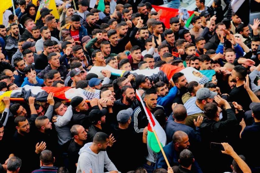 تشييع جثماني الشهيدين الفروخ في بلدة سعير شمال شرق الخليل