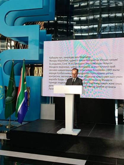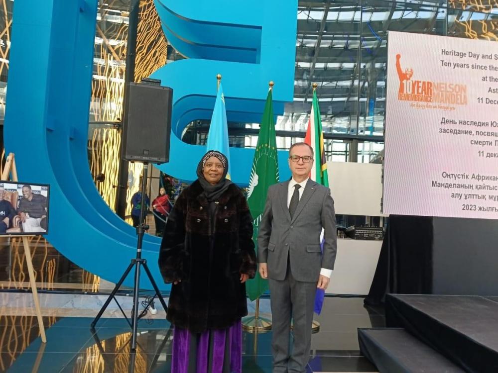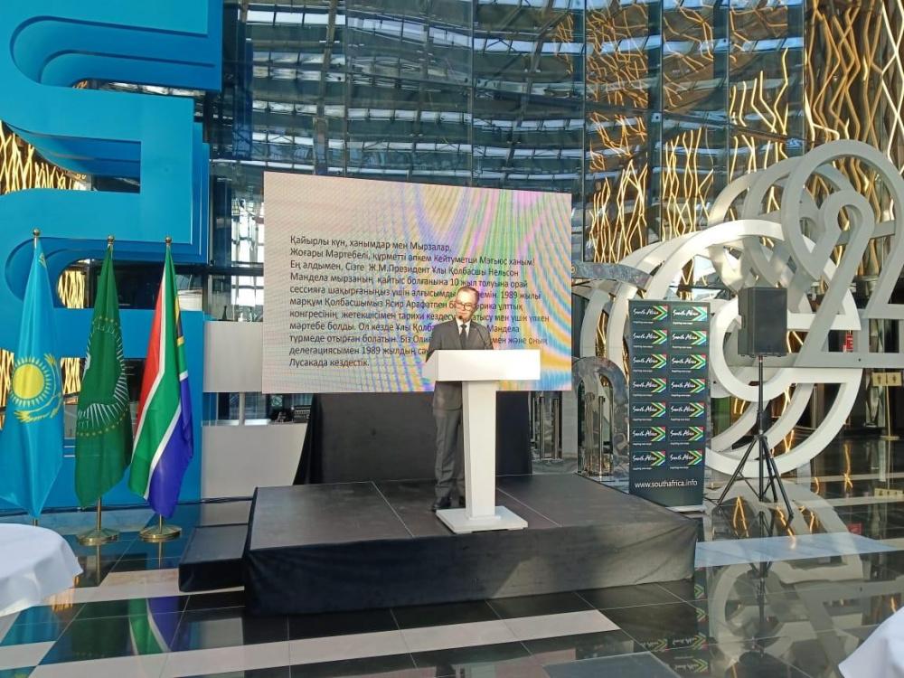 وشكر السفير أبو زيد سفيرة جنوب أفريقيا لدى كازاخستان على تنظيمها حفل تأبين ذكرى مناضل أممي ناضل من أجل شعبه ووطنه ، ورغم ذلك لم ينسى دعم ومناصرة القضية الفلسطينية العادلة والوقوف طوال حياته مدافعاً عنها.