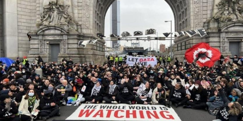 مئات المتظاهرين في نيويورك يتوشحون بالسواد ويطالبون بوقف الحرب على غزة