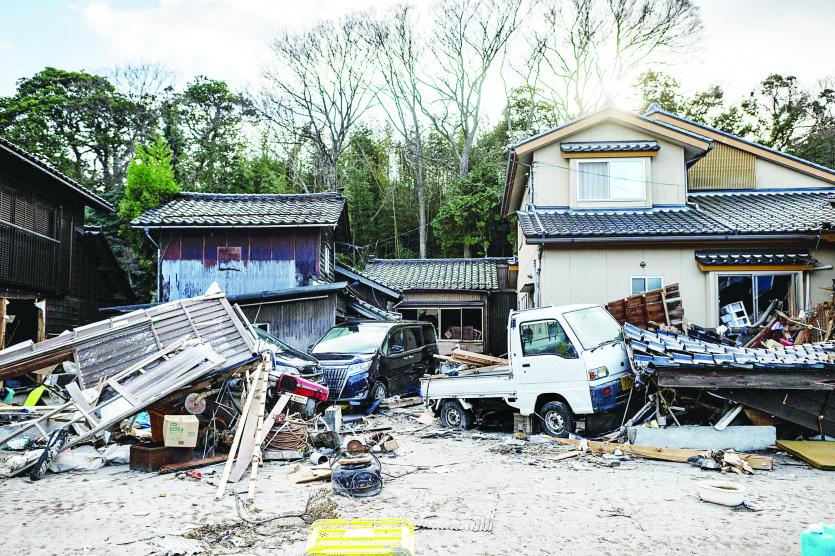 وهزّ الزلزال الذي بلغت قوته 7,5 درجة شبه جزيرة نوتو في مقاطعة إيشيكاوا، وهو شريط ضيق من الأرض يمتد حوالي مئة كيلومتر داخل بحر اليابان، وتسبّب بانزلاقات أرضية وانهيار أبنية وطرق. وكان الزلزال قوياً الى حد شعر به سكان مناطق بعيدة مثل طوكيو الواقعة على مسافة 300 كيلومتر. كذلك، ضربت موجات تسونامي بعض المناطق الساحلية وغمرت الأمواج التي بلغ ارتفاعها أكثر من متر أرصفة ومنازل وطرقات ساحلية. ويعقد الطقس البارد والسيّئ مهمة عمّال الإنقاذ. ويتوقع أن تتساقط ثلوج، اليوم الأحد، بينما تعيق تصدّعات عملاقة وحوالي ألف انزلاق أرضي حركة المرور على الطرق. وأُنقذت مسنّتان من تحت أنقاض منزليهما الخميس في واجيما. لكن منذ ذلك الحين لم يتم العثور على الناجين. وأصبحت شيرومارو، وهي إحدى القرى الصغيرة في خلجان شبه الجزيرة، مجرد كومة من حطام الخشب والحديد والبلاستيك، بعدما تعرضت لتسونامي في الأول من كانون الثاني/يناير. وقال توشيو ساكاشيتا (69 عاماً) لوكالة فرانس برس، إن «التسونامي جاء من خليج شيرومارو من خلال النهر، ثم عبر الشارع»، مقدراً أن منزله غمرته المياه بارتفاع حوالي مترَين ونصف المتر.