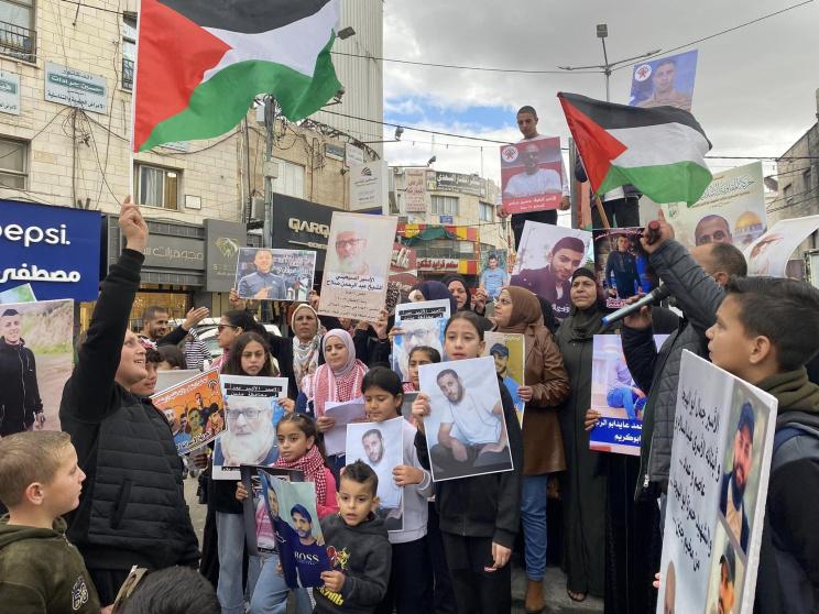 ونظمت الوقفة بدعوة من أهالي المعتقلين في محافظة جنين، على دوار السينما في المدينة، بمشاركة فصائل العمل الوطني، ونادي الأسير، وذوو المعتقلين وأطفالهم.