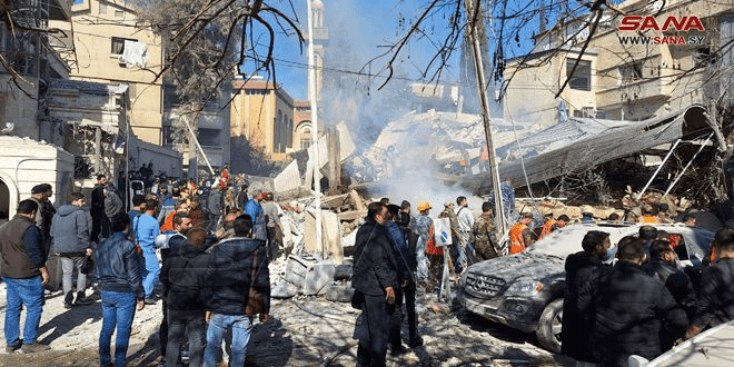 وأفادت وكالة الأنباء السورية "سانا"، بأن الهجوم الذي استهدف مبنى سكنيا ناجم عن عدوان إسرائيلي، ما أسفر عن انهياره بشكل كامل.