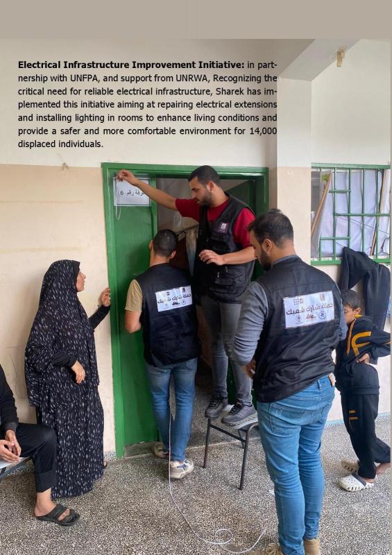 اما على صعيد المبادرات تقول النتشة فان "شارك" بالشراكة مع صندوق الأمم المتحدة للسكان، ودعما من وكالة الغوث، وجمعية بنك الدم المركزي – قطاع غزة، وجمعية الكشافة الفلسطينية في قطاع غزة، نفذ 11 مبادرة مختلفة تمثلت في تنفيذ مبادرة التعليم المستمر لطلبة التوجيهي حيث تم توزيع المواد اللازمة والقرطاسية إلى 300 طالب توجيهي نازح، ضمن مبادرتنا التعليمية. اضافة الى مبادرة التعلم من خلال اللعب: والتي صممت لدعم استمرارية التعليم للأطفال، باعتماد المنهجيات القائمة على اللعب ودمج الأنشطة الحركية، بحيث عادت بالفائدة على 500 طفل ويافع نازح. ومبادرة الرعاية الذاتية: لزيادة الوعي لدى السيدات النازحات بأهمية الرعاية الذاتية. خاصةً في ظل نقص المستلزمات الصحية. واستفادت منها 230 امرأة وفتاة.