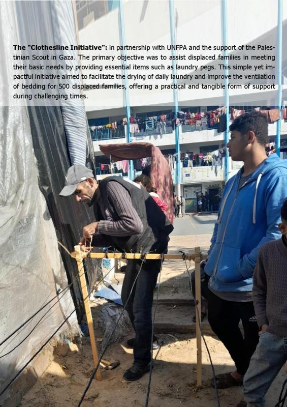 أما مبادرة المناشر بالشراكة مع الكشافة الفلسطينية، تقول النتشة: يكمن الهدف الرئيسي منها في مساعدة العائلات النازحة في تلبية احتياجاتها الأساسية من خلال توفير مواد أساسية مثل مشابك الغسيل. تعتبر هذه المبادرة بسيطة ولكن لها تأثير كبير، بحيث تهدف إلى تسهيل تجفيف الغسيل اليومي وتحسين التهوية لفرش النوم لـ 500 عائلة نازحة، مقدمة دعما عمليا وملموسا خلال الأوقات الصعبة.