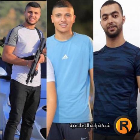 والشهداء الذين اغتالتهم الاحتلال هم: الشقيقان محمد وباسل أيمن الغزاوي، ومحمد وليد جلامنة، علما أن الشهيد باسل مصاب ويتلقى العلاج في المستشفى منذ 25 تشرين أول / أكتوبر من العام الماضي.