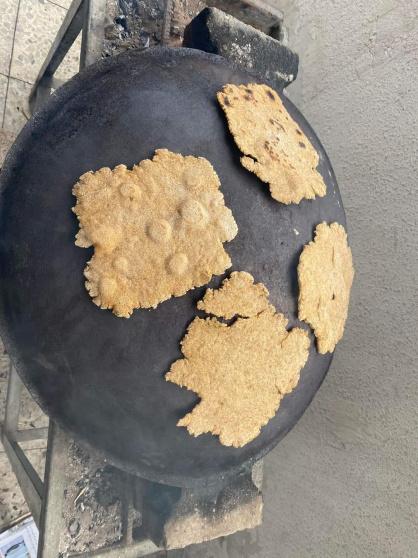 وضرب طارق مثالًا على طريقتهم في أكل رغيف الشعير والذرة قائلًا أنه يتم إلحاقه في فمهم بعد تذوق معلقة من طبيخ الخبيزة أو البازيلاء التي يقومون بطبخها أغلب الأحيان بسبب عدم توفر المواد الغذائية.