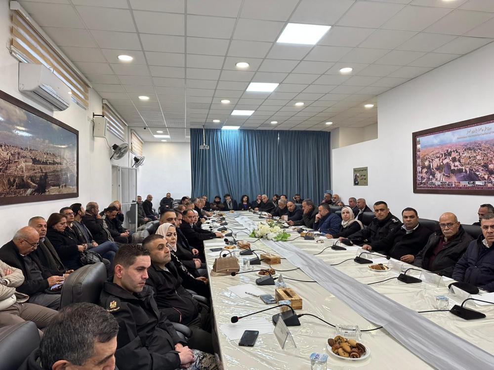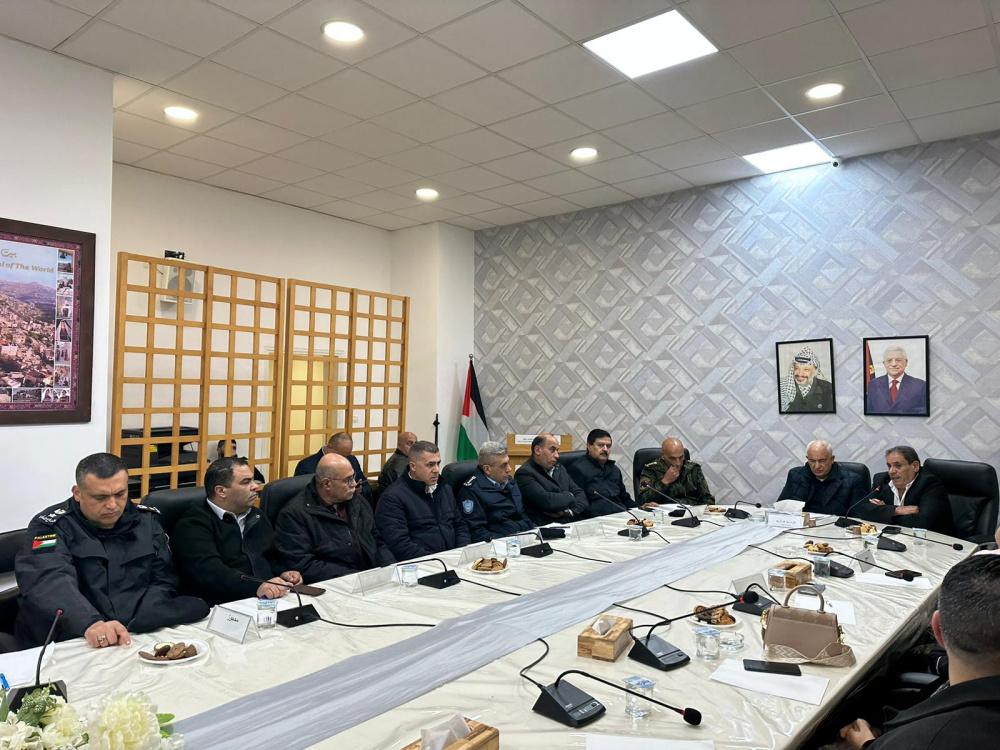 وفي مدينة بيت لحم التقى اللواء هب الريح بمسير أعمال محافظة بيت لحم محمد طه بحضور قادة المؤسسة الأمنية وقيادات وطنية وأعضاء المجلس التنفيذي والاستشاري، وأمناء سر المكاتب الحركية وممثلي النقابات المهنية والمناطق التنظيمية في بيت لحم والهيئات المحلية وأشاد اللواء هب بدور المؤسسة الأمنية في تطبيق القانون وفرض النظام العام في المحافظة ومحاربة الظواهر السلبية، مشيرًا إلى حرص وزارة الداخلية على التواصل مع المؤسسات الرسمية والجهات الشريكة كافة، بما يخدم مصلحة المواطن.
