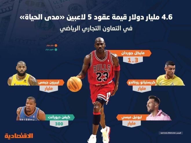 بلغت قيمة العقود التي وقعها خمسة من الرياضيين "مدى الحياة" مع عدد من العلامات التجارية، 4.6 مليار دولار في أضخم عمليات التعاون التجاري في تاريخ الرياضة.