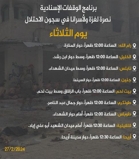 مرفق برنامج الفعاليات الإسنادية غداً الثلاثاء 27/2/2024