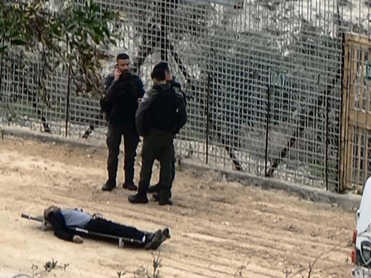 وقد أظهرت صور ومقاطع فيديو بثها نشطاء، شابا ملقى على الأرض قرب الحاجز، يحيط به عدد من جنود الاحتلال.