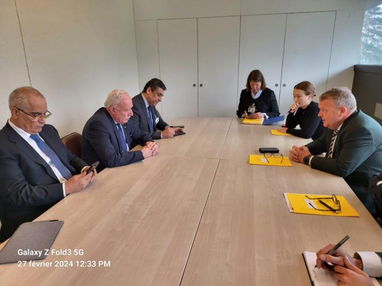 التقى وزير الخارجية والمغتربين الدكتور رياض المالكي، بالسيد لارس لوكه راسموسن وزير خارجية الدنمارك، على هامش اعمال مجلس حقوق الانسان في دورته ال 55.
