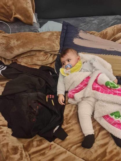 حيث توثق الصور المرفقة الجريمة من عدة جوانب، بدايةً من محاولة الإعدام التي تمت والأسير حسونة نائم في فراشه، وتظهر الدماء و الرصاص بالقرب من طفله الرضيع، كما تطاير جزء من عظمه ولحمه داخل منزله،عثر عليها من قبل ذويه.