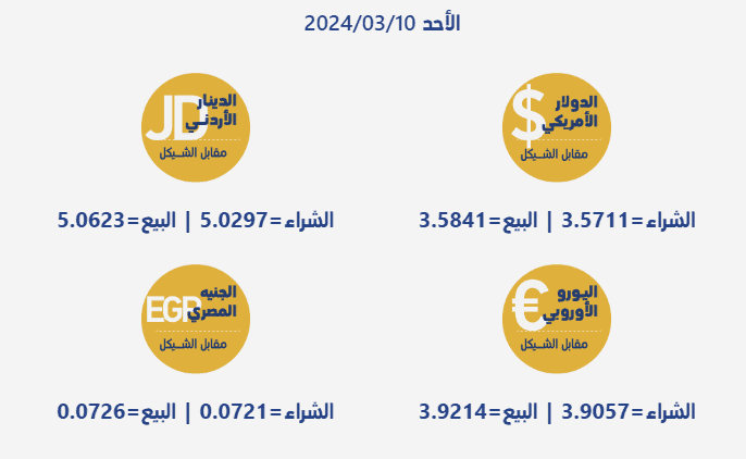 جاءت أسعار صرف العملات مقابل الشيقل الإسرائيلي، اليوم الأحد، بحسب سلطة النقد الفلسطينية، على النحو التالي: