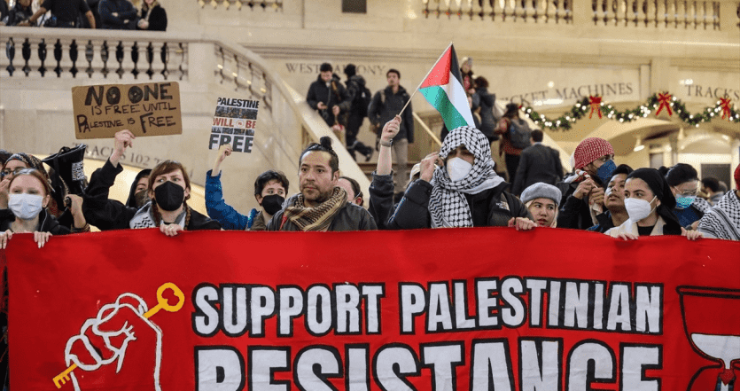 مظاهرة حاشدة في نيويورك ضد عمدة المدينة لدعمه دولة الاحتلال ونصرة لفلسطين