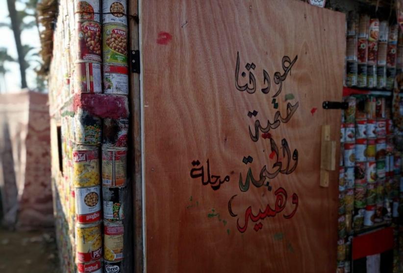 "خيمة المعلبات" تجسد ما يرتكز عليه أهالي غزة للعيش