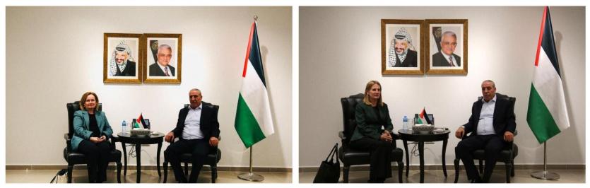 وناقش الشيخ والمبعوثة النرويجية آخر المستجدات السياسية على الساحة الفلسطينية والإقليمية والدولية، وآخرها تشكيل الحكومة الجديدة برئاسة محمد مصطفى، والجهود المكثفة بالتنسيق والتعاون مع الأشقاء العرب، لإنهاء الحرب والكارثة الإنسانية المتفاقمة في قطاع غزة بعد مرور 185 يوما من الحرب المدمرة، التي تستهدف الكل الفلسطيني، كما تم نقاش ملف التعاون الاقتصادي مع المملكة النرويجية إلى حين إنهاء الأزمة المالية.