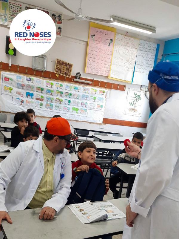 يُذكر أن الأنوف الحمراء الدولية- فلسطين بدأت عملها في 2010 في فلسطين وهي فرع من المؤسسة الأم، الأنوف الحمراء الدولية في فيينا/النمسا، وتحمل المؤسسة رسالة نشر الفكاهة والضحك بين من هم بأمس الحاجة للفرح وتستهدف في عملها الأطفال المرضى في المستشفيات وكبار السن في دور الرعاية والأطفال في المناطق المهمشة ومناطق الأزمات.