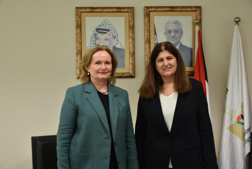 بحثت وزيرة الدولة لشؤون وزارة الخارجية والمغتربين د.فارسين اغابكيان شاهين والقنصل العام البريطاني في القدس السيدة دايان كورنر، اليوم الخميس في مقر الوزارة، سبل التعاون المشترك لمتابعة ما جاء خلال لقاء دولة رئيس الوزراء وزير الخارجية والمغتربين د. محمد مصطفى مع وزير الخارجية البريطاني ديفيد كاميرون يوم امس الأربعاء.