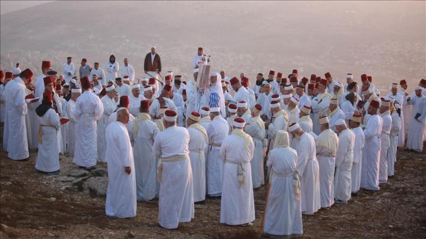 السامريون يحتفلون بعيد "الفسح" على قمة جرزيم في نابلس