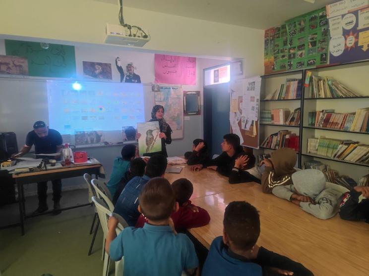 وتضمنت الجلسات عروضًا لمقاطع فيديو توعوية وتعليمية حول الكائنات البرية مثل الضبع المخطط والبومة البيضاء (صديقة المزارع)، إلى جانب توزيع بوسترات ومطبوعات توعوية للعديد من الطيور والحيوانات والنباتات مثل غزال الجبل الفلسطيني وعصفور الشمس الفلسطيني و سوسن فقوعة
