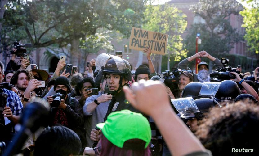 ويسعى الطلبة في الجامعات الأميركية إلى الضغط على الإدارة الأميركية لسحب الاستثمارات من دولة الاحتلال والشركات الداعمة لها ومقاطعة الجامعات الإسرائيلية المتواطئة في الإبادة الجماعية للشعب الفلسطيني.