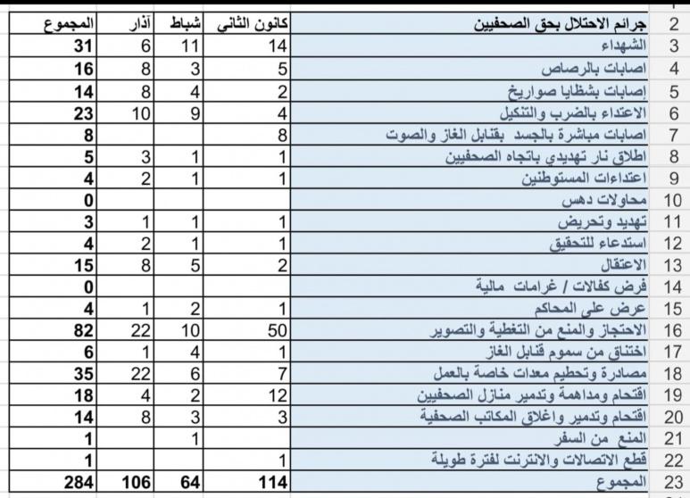 وقد عقب رئيس لجنة الحريات في النقابة محمد اللحام على تقرير الربع الأول من هذا العام بأن الأمر الطبيعي في كل الحروب والنزاعات يكون عدد الجرحى أكثر بكثير من عدد القتلى ، وهذا ما يجعل ما يحدث في فلسطين بالأمر غير الطبيعي، لأن هذا يشير ويدلل ان هنالك قرار على أعلى مستوى سياسي في منظومة كيان الاحتلال الإسرائيلي باستهداف الصحفيين الفلسطينيين بالقتل والتصفية في محاولة لقتل الحقيقة حيث كل من جرح من الصحفيين كان مشروع شهيد وليس كل من استشهد كان المقصود جرحه .