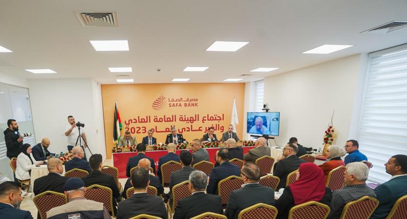 عقد مصرف الصفا اجتماع الهيئة العامة العادية وغير العادية للعام 2023، وذلك يوم الثلاثاء الموافق 14/5/2024 في مقر الإدارة العامة في رام الله، بنسبة حضور 61% أصالة. وشارك في الاجتماع رئيس مجلس إدارة مصرف الصفا السيد يزيد عدنان المفتي، ونائب رئيس مجلس الإدارة معالي السيد "محمد كمال" حسونة، وممثل هيئة الرقابة الشرعية الشيخ د. عبد الله الكيلاني، عبر تقنية الزووم، ، وثلة من أعضاء مجلس الإدارة والمدير العام السيد بيان قاسم والادارة التنفيذية، وممثل مسجل الشركات الاستاذ بلال كتانة، وممثل سلطة النقد الفلسطينية، السيد احمد مرار، وممثل هيئة سوق رأس المال، السيد مراد الجدبة، ومدقق الحسابات الخارجي- شركة ارنست ويونغ، السيد سائد عبد الله، والمستشار القانوني الأستاذ مهند عساف بالإضافة للحضور من مساهمي المصرف.