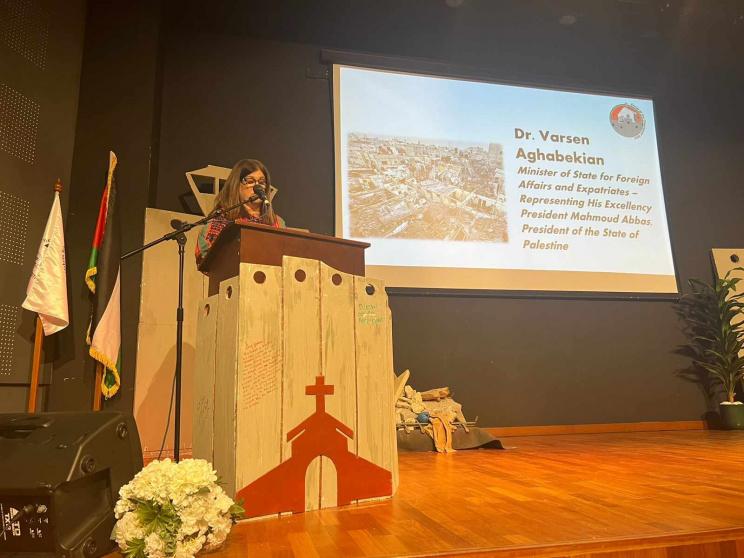 شاركت وزيرة الدولة لشؤون وزارة الخارجية والمغتربين د.فارسين اغابيكيان شاهين، ممثلا عن فخامة الرئيس محمود عباس، في الجلسة الافتتاحية للمؤتمر الدولي السابع "المسيح امام الحاجز" الذي تنظمه كلية بيت لحم للكتاب المقدس، والذي يحاكي معاناة الشعب الفلسطيني تحت وطأة الاحتلال الاسرائيلي من منظور لاهوتي فلسطيني مسيحي، بحضور ومشاركة عدد من اللاهوتيين الدوليين، الى جانب السفراء والدبلوماسيين والشخصيات الاعتبارية والوطنية، ورجال دين مسيحيين من مختلف الكنائس.