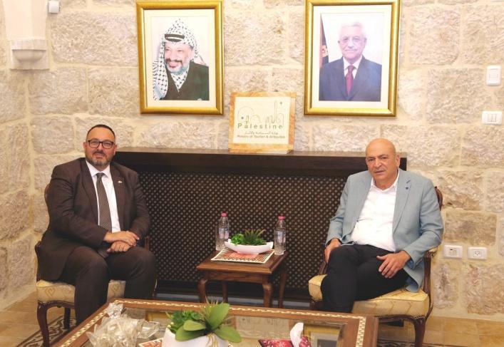 بحث وزير السياحة والآثار هاني الحايك اليوم الخميس مع سفير جمهورية مالطا لدى دولة فلسطين فرانكلين اكويلينا، التعاون في مجال السياحة.