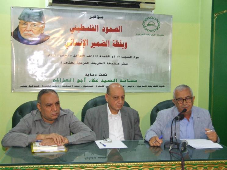 عقدت مشيخة الطريقة العزمية امس السبت مؤتمرًا بعنوان (الصمود الفلسطيني ويقظة الضمير الإنساني)، برعاية وحضور السيد علاء أبي العزائم شيخ الطريقة العزمية ورئيس الاتحاد العالمي للطرق الصوفية، والسيد أحمد علاء أبي العزائم نائب عام الطريقة العزمية.