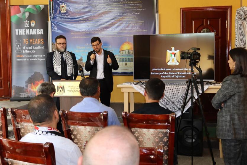 واستعرض سفير دولة فلسطين لدى جمهورية طاجيكستان لؤي عيسى، خلال الندوة، ذكرى النكبة وتكرار مآسي الشعب الفلسطيني. ثم تلا ذلك فقرة أسئلة وأجوبة، إذ قام السفير بالإجابة عن أسئلة الصحفيين.