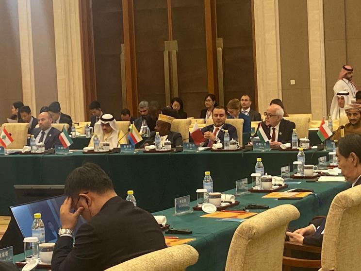 وأشار إلى ان الصين لعبت، كعضو دائم في مجلس الأمن للأمم المتحدة، دورا محوريا ومساندا للموقف العربي في تبني قرارات مجلس الأمن 2712، 2720، 2728، ونقدره عاليا ونشعر بامتنان عظيم نحوه.