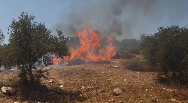 المستوطنون يحرقون اراضٍ في برقة شرق رام الله