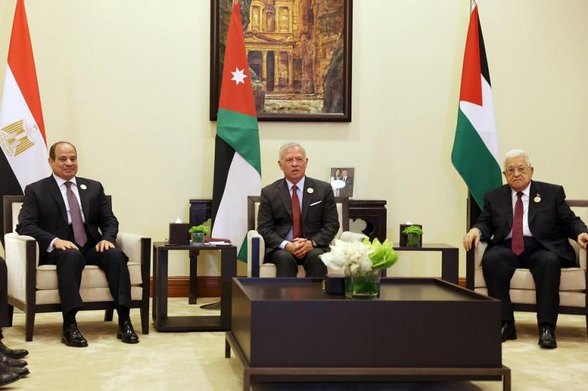 عقد رئيس دولة فلسطين محمود عباس، والعاهل الأردني الملك عبد الله الثاني، ورئيس جمهورية مصر العربية عبد الفتاح السيسي، اليوم الثلاثاء، قمة ثلاثية في مركز الملك الحسين بن طلال للمؤتمرات بمنطقة البحر الميت، على هامش أعمال "مؤتمر الاستجابة الإنسانية الطارئة لغزة"، بحضور الوفود الفلسطينية والمصرية والأردنية المشاركة في المؤتمر.