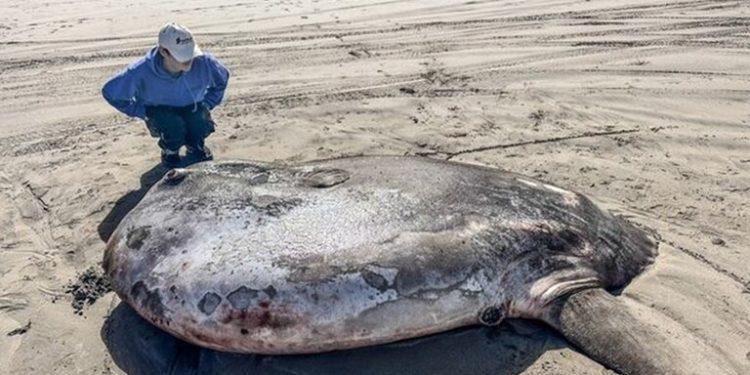 جرفت المياه سمكة كبيرة من فصيلة أسماك الشمس يعتقد أنها نادرة على شاطئ ولاية أوريجون الأمريكية المطلة على المحيط الهادئ شمال غربي البلاد، حسبما أفادت حديقة أسماك “سي سايد”.