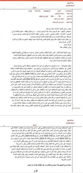 رابعا: يبقى المجلس في حالة متابعة للحدث والتقرير في ما يراه مناسبا على ضوء المستجدات. تحريرا في 14/06/2024 مجلس النقابة.