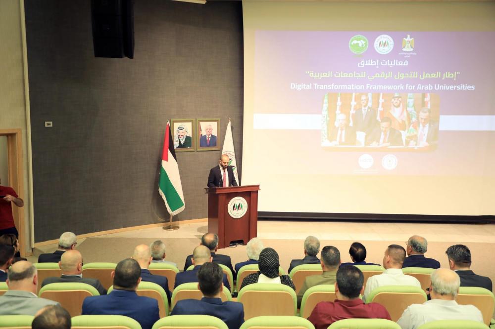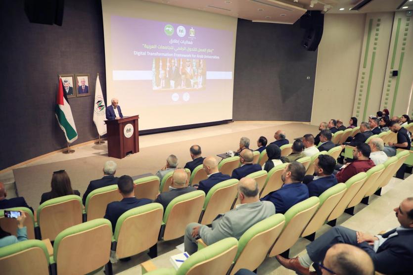 تحت رعاية وبحضور وزير التربية والتعليم العالي الدكتور أمجد برهم، نظم المركز الوطني للتحول الرقمي في الجامعة العربية الأمريكية فعالية إطلاق "إطار العمل للتحول الرقمي في الجامعات العربية" بالشراكة مع اللجنة الوطنية الفلسطينية للتربية والثقافة والعلوم والمنظمة العربية للتربية والثقافة والعلوم وذلك في حرم الجامعة برام الله.
