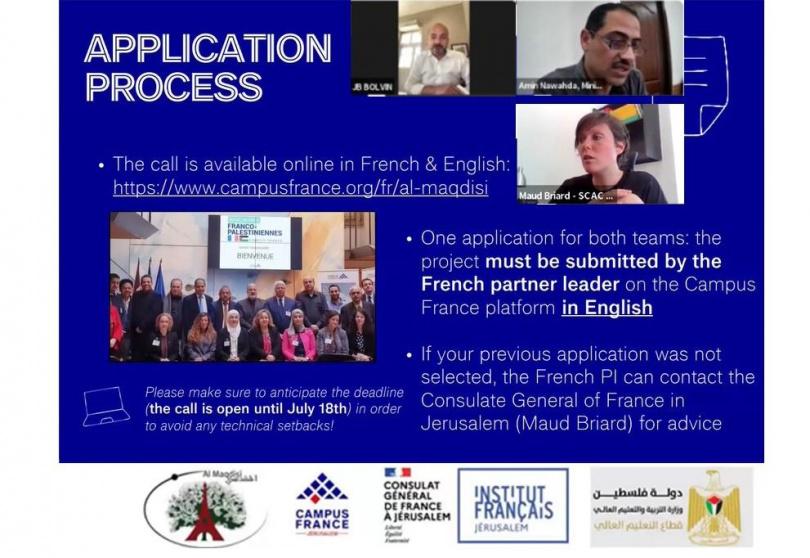 ويهدف برنامج "المقدسي" لتسهيل وتطوير الشراكات العلمية بين الباحثين الفلسطينيين والفرنسيين في مؤسسات التعليم العالي والمؤسسات البحثية.