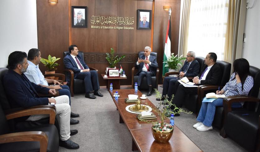 وحضر اللقاء رئيس الهيئة الوطنية للاعتماد والجودة والنوعية لمؤسسات التعليم العالي د. معمر شتيوي، والوكيل المساعد ومدير عام المنح والخدمات الطلابية د. شادي الحلو، ومدير عام التعليم التقني م. سامر موسى، ومدير عام التعليم الجامعي أ. ناصر ياسين، ومديرة العلاقات الدولية في "التربية" أ. نيفين مصلح.