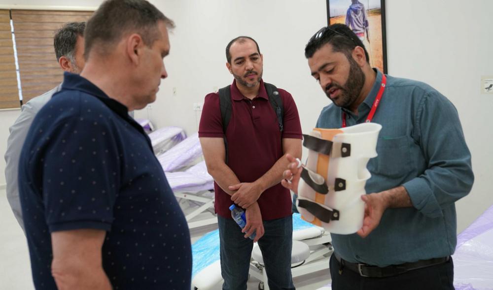 وضم الوفد الزائر كلا من، البروفيسور فرانس جوزيف من مؤسسة MIT الامريكية، والسيدان حكم الطويل وفراس فرسخ ممثلي جايكا، وكان في الاستقبال الأستاذ مصطفى ارشيد مدير مصنع الأطراف الصناعية والأجهزة المساعدة في الجامعة، والأستاذ وليد أبو سمرة المدير الفني لمصنع الأطراف الصناعية.
