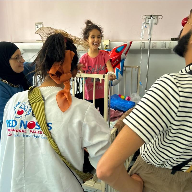 ومؤسسة الأنوف الحمراء فلسطين هي مؤسسة فرعية تابعة للأنوف الحمراء الدولية المتواجدة في فيينا-النمسا، وهي المقر الرئيسي لأكبر مجموعة أطباء مهرجين في العالم، تعمل الأنوف الحمراء فلسطين على نشر الفكاهة والضحك بين من هم بأمس الحاجة للفرح من خلال التهريج الطبي،  وعلى مدار الـ 14 عام الماضية، أحدثت الأنوف الحمراء فلسطين فرقاً بالنسبة للمرضى والعائلات والطاقم الطبي في العديد من المرافق الصحية والرعاية في فلسطين، حيث تعمل الأنوف الحمراء فلسطين على تمكين الجماهير المهمشة مثل الأطفال في المستشفيات، والأشخاص في مراكز دور رعاية المسنين، والمرضى في مراكز إعادة التأهيل، والشباب ذوي الإعاقات العقلية والإعاقات المختلفة، والفئات المهمشة الأخرى.