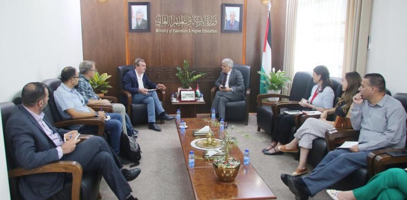 التقى وزير التربية والتعليم العالي د. أمجد برهم، في مكتبه برام الله اليوم، المدير القطري لمؤسسة إنقاذ الطفل زافيير جوبارت، حيث تم التباحث في سبل تعزيز التعاون المشترك في عديد القضايا التي تهم التعليم والتحديات التي يجابهها.
