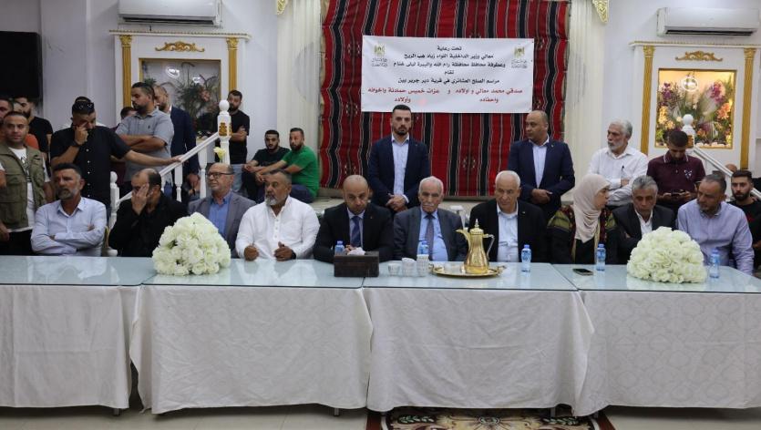 نظمت وزارة الداخلية بحضور وزير الداخلية زياد هب الريح مراسم الصلح العشائري والتوقيع على صك الصلح في قرية دير جرير شرق رام الله بين كل من صدقي محمد معالي وأولاده وأحفاده وعزات خميس حمادنة وإخوانه وأولادهم حيث امتثل الطرفان لشرع الله تعالى وساد جو من التسامح والود بين العائلتين في ختام مراسم الصلح.