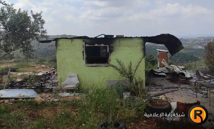 مستوطنون يحرقون بيتا زراعيا وبركسا في الزاوية غرب سلفيت