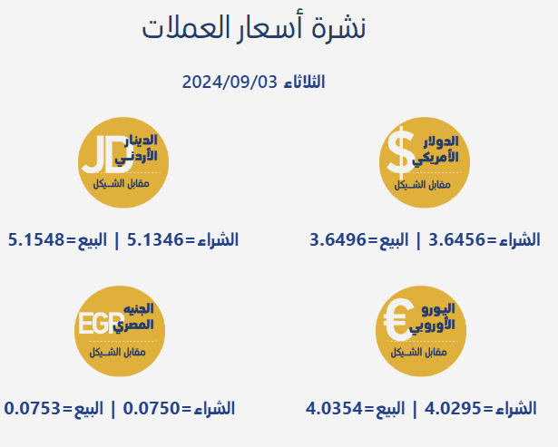 مقابل الشيقل، اليوم الثلاثاء، بحسب سلطة النقد الفلسطينية، على النحو التالي: