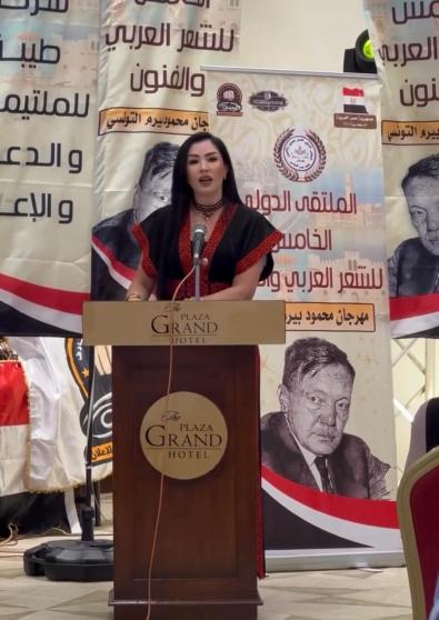 وقالت " أشعر بفخر كبير لتمثيل فلسطين في هذا المحفل الشعري الكبير، وأتمنى أن تكون قصائدي قد وصلت إلى قلوب الحضور ".