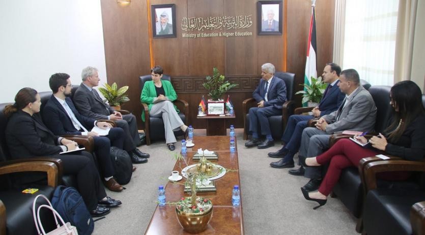 بحث وزير التربية والتعليم العالي أمجد برهم، مع نائبة رئيس التعاون الإنمائي في الممثلية الألمانية روث مولر، آليات تعزيز التعاون المشترك لدعم التعليم المهني.